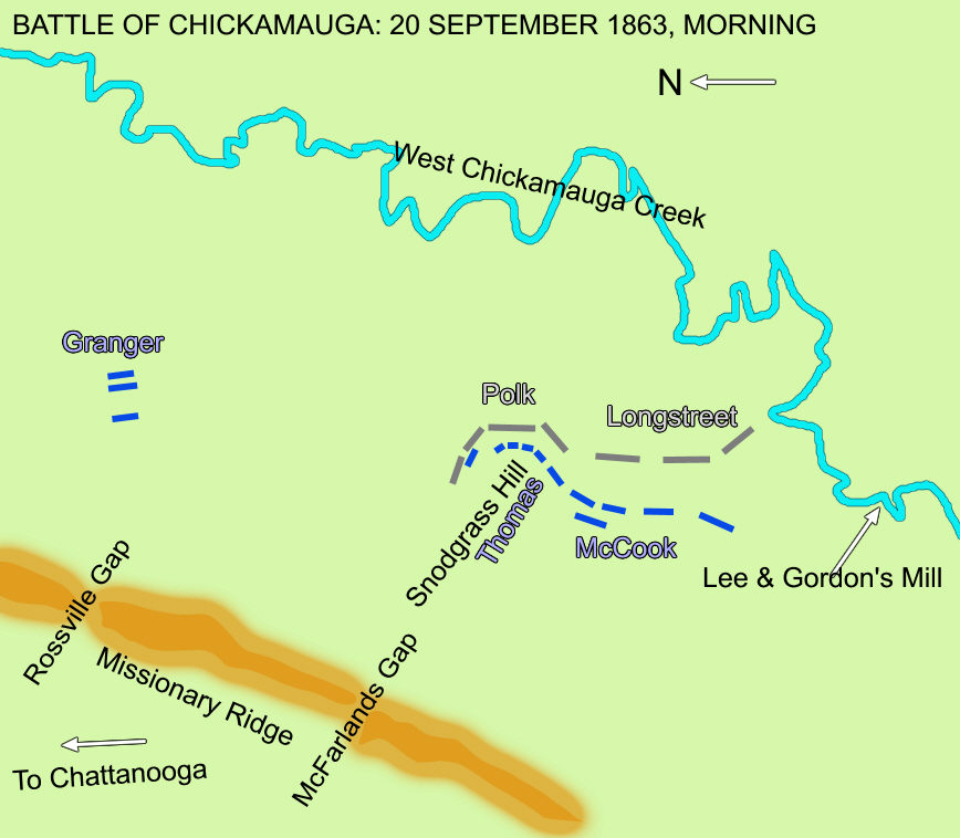 Map showing the position of the Confederate and Union positions during the morning of 20 September (Battle of Chickamauga).