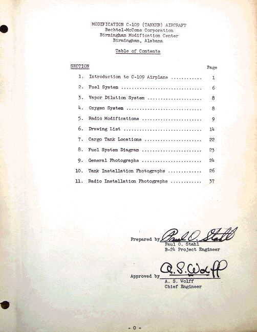 Many thanks to Paul Stahl Jr, for sending us this modification manual for the C-109 fuel transport, an modified verison of the B-24 bomber. His father, Paul Stahl Sr, was the project engineer for the C-109.