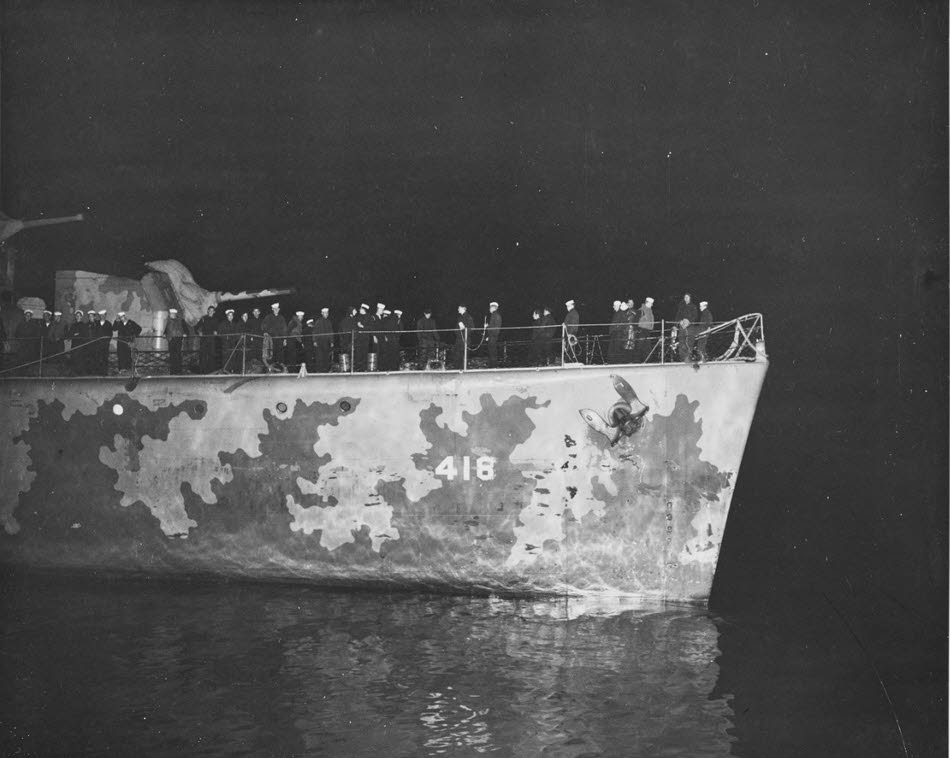 USS Roe (DD-418) carrying survivors from SS Alan Jackson