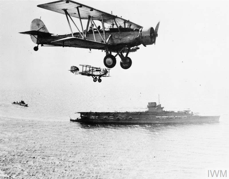 Here we see a Blackburn Shark flying over HMS Furious, with a Fairey IIIF in the background.