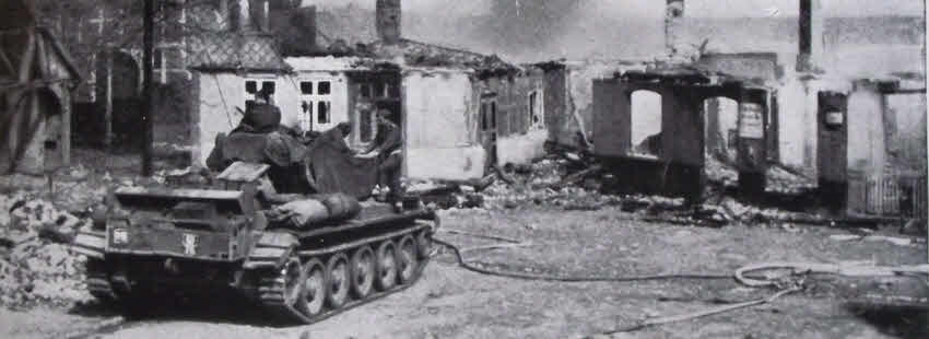 Here we see a Cromwell tank of the 2nd Army passing through Hollenstadt on the way to Hamburg. It isn't obvious which version of the Cromwell this is, although the Cromwell IV is most likely, as it was produced in the largest numbers and was the most common version in the fighting in 1944-45.