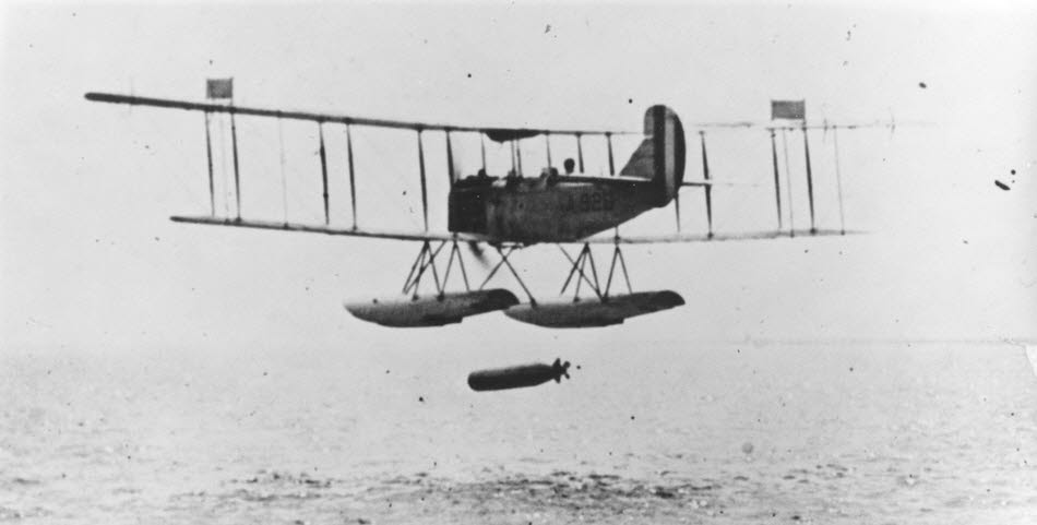 Here we see a Curtiss R-6L dropping a torpedo at some point in 1919, when the aircraft was being tested as possible torpedo bomber. It was then used in that role until the arrival of more powerful aircraft.