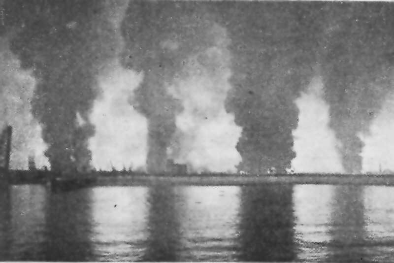 A view of fires at Dunkirk during the evacation of May-June 1940.