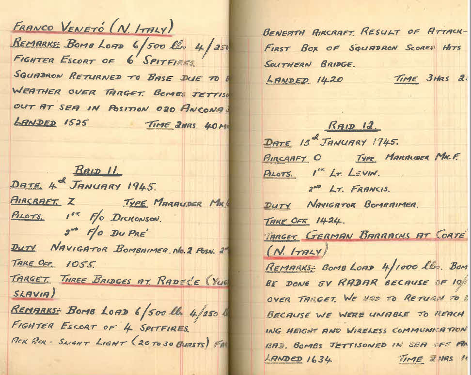 Raid 12 was an attack on German barracks at Corte in Italy, and was to have been carried out using radar bombing aids, but the aircraft were unable to reach their bombing height and the mission had to be aborted.