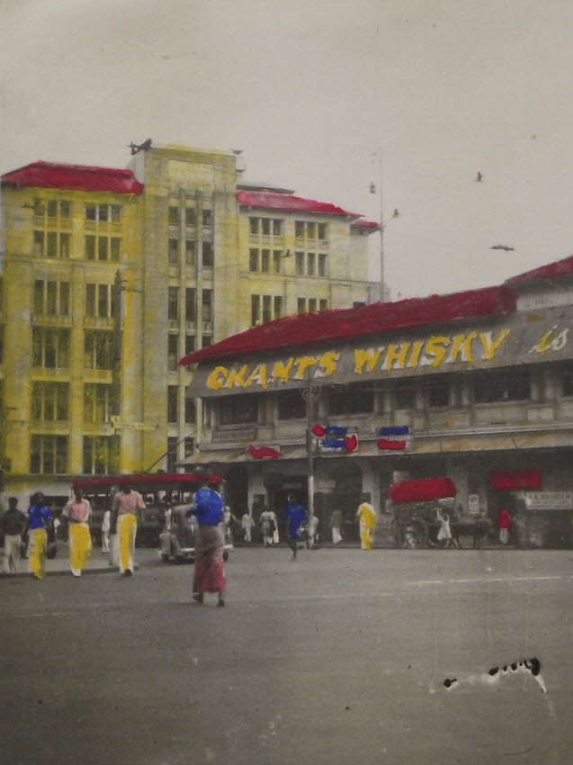 This colourized photo shows a Calcutta street scene, some time during the Second World War.