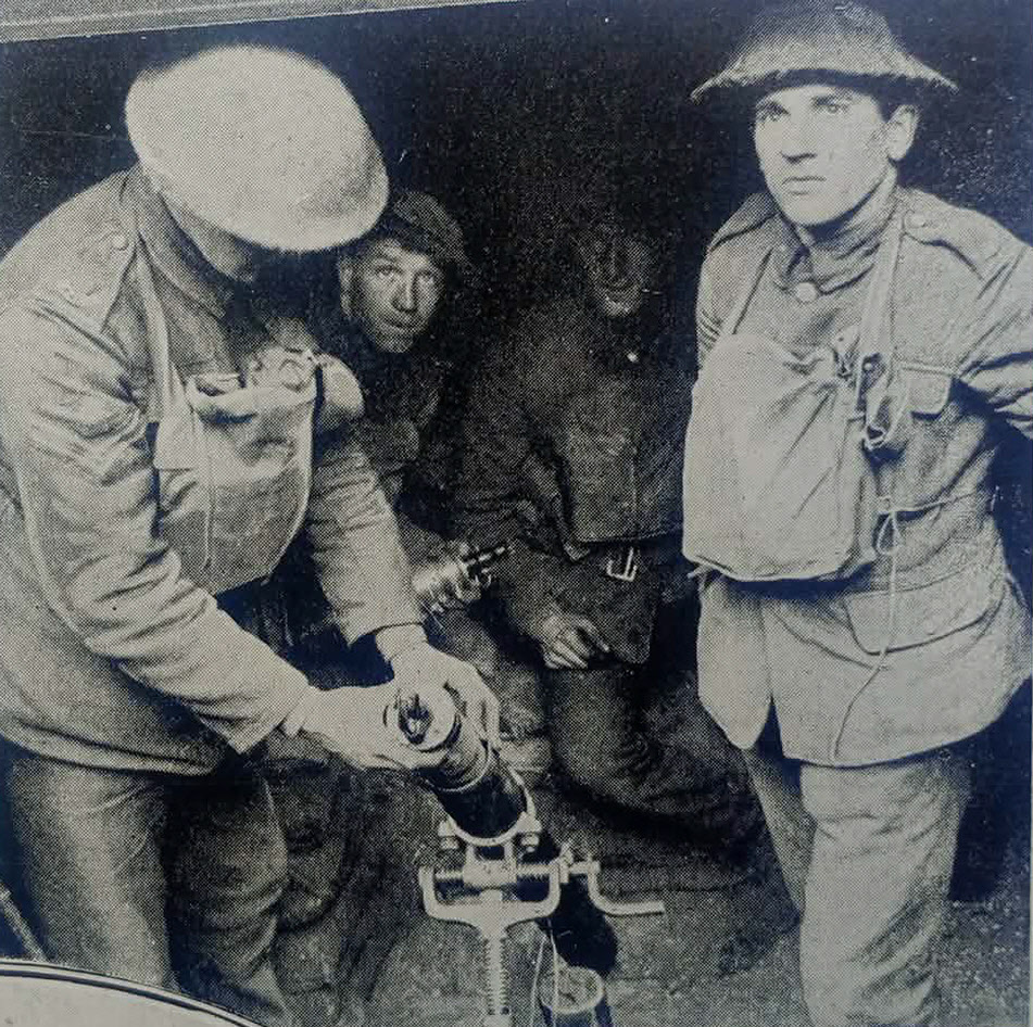 Here we see men of the York and Lancashire regiment loading a Stokes Mortar, somewhere on the Western Front.