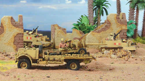 In action things can get pretty deadly – if your infantry gets caught in the open by other infantry it will probably suffer pretty heavy losses. Infantry vs armour battles depend on two factors – infantry without dedicated anti-tank weapons will do badly, and the size of the unit is absolutely key – you roll D6 for each figure in the attacking unit and score one hit for each roll of 4+ against a static vehicle or one that hasn’t yet been given an order that turn, add up all the hits and add another D6 to get your final attack value. This is compared to the vehicle’s damage score - 9+ for a Matilda Infantry Tank for example. A standard infantry section with anti-tank weapons starts at five men, so would need some very good rolls to damage a Matilda – three hits out of five and a 6 on the D6. In contrast a full squad of ten men would probably expect five hits and would need a 4 to do superficial damage. Vehicle vs vehicle combat uses damage tables. The attacker makes a damage roll – D6 plus the penetration value of their weapon plus any bonuses that apply (rear armour etc). Anti-tank guns range from +4 to +7. Armoured vehicles had a defence value ranging from 7 to 11. If the attack beats defence by 1 or 2 you roll once on the full damage table, by 3 or more you roll twice. This is a D6 table, with results ranging from crew stunned to knocked out – there is a 50/50 chance of a vehicle being directly knocked out, and one of the other result sets it on fire with the potential to be destroyed. The figures have been worked out nicely – a super-heavy anti-tank gun can do a maximum of 13 damage, so needs a roll of 5 to do full damage to a super-heavy tank, but can’t do massive damage to it.